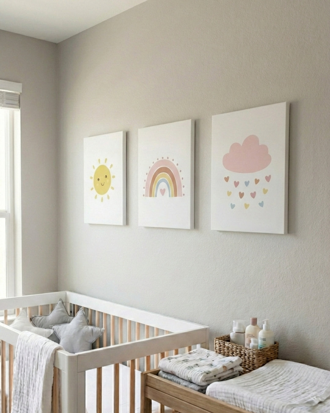 Set 3 cuadros infantiles Canvas Sol Arcoíris y Nube