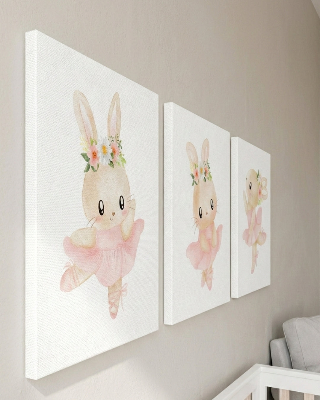 Set 3 cuadros infantiles Floral Conejita Ballet Bailarina
